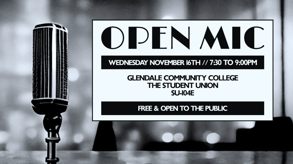 Open Mic on Wednesday! November 14, 2022gccazcrwLeave a comment Bring your poetry, short prose, and other creative pursuits! Come to participate and share, or come merely to listen and admire. All are welcome. Wednesday night, November 16th, from 7:30 to 9:00pm.